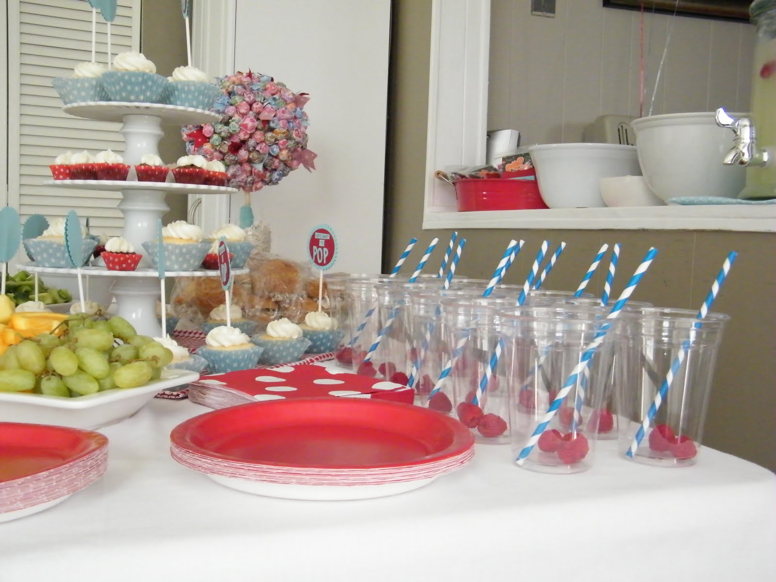 Kate and I threw Debi a baby shower. We had to since this was her First boy and she already has 2 girls. We had so much fun planning this shower. Kate is sooooo super creative and I just took her orders and went with it. The theme was "She's going to Pop!" And it was ever so cute!